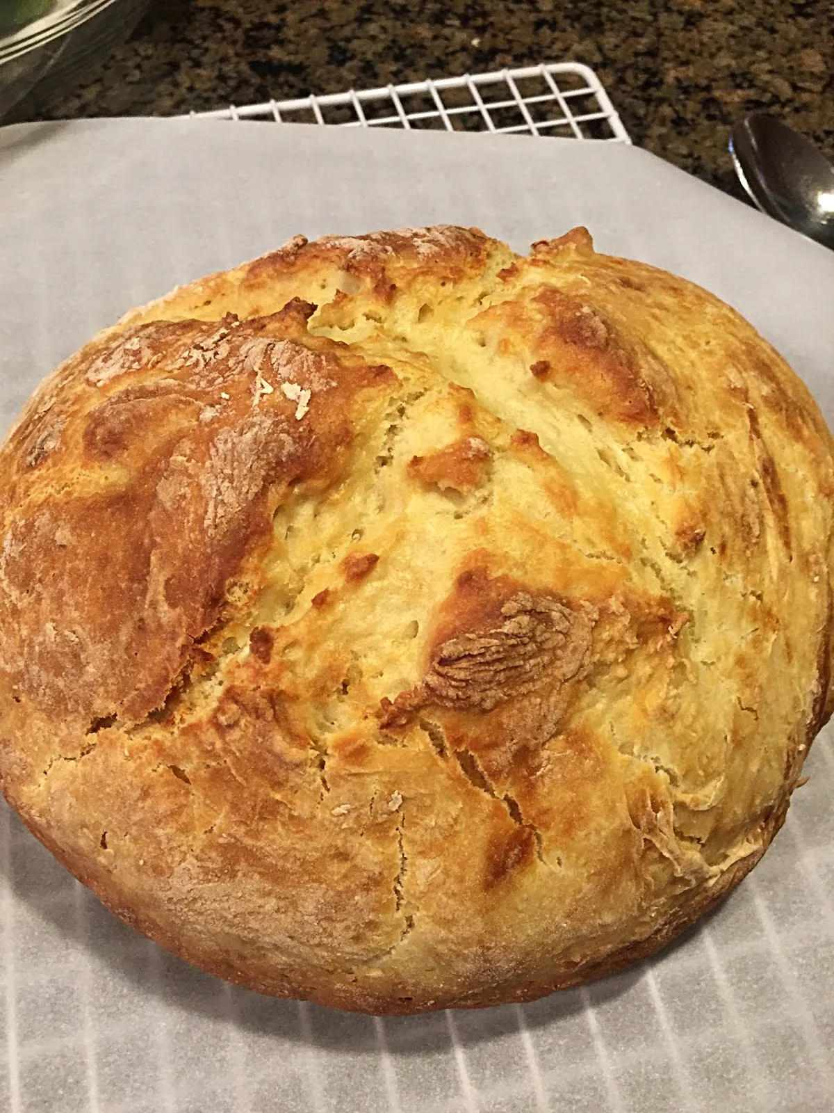 So I just have to post about this bread. I discovered the recipe on St Patrick's Day (naturally), as I decided last minute I wanted to try my hand at some soda bread to go along with our Irish Stew. I did a little research and landed on a website called "The Society for the Preservation of Irish Soda Bread". For reals. It sounds so official, doesn't it? Anyway, I actually found this website uber informative. Turns out they feel that if you have raisins and/or caraway seeds in your soda bread, or any sugar at all, you are actually making 'tea bread'. Whether or not that is true is no matter to me. What sucked me in was the simplicity of the recipe, and the short ingredient list, both of which were necessary at 3 p.m. on actual St Patrick's Day. This bread was a huge hit at my house. Actually, YUGE. I made it again the other night to along with some chicken soup. You can have it in the oven in 3 minutes flat, it looks completely gorgeous when you pull it out, and it is so incredibly delicious slathered in copious amounts of butter alongside any soup, stew, or similar comfort food. It's dense and biscuit-like (meaning honey is also good on it...ask me how I know), and all of the wonderful things that will make you happy on a cold, rainy night. You have everything you need to make it on hand already, I guarantee it.