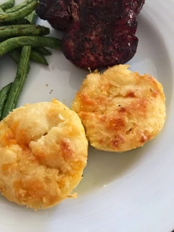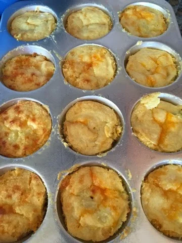 Bring a small pot of water to a boil. Cook the chopped cauliflower in the boiling water for 3 minutes, or until crisp-tender. Drain well and pat dry with paper towels. Feel free to do this far ahead of time if you wish. I did so, and just popped the cooked cauliflower in the fridge. Grease a muffin tin with cooking spray. In a large bowl, combine cooked cauliflower and all remaining ingredients in a large bowl and mix well. Divide between each muffin cup (12 of them) and bake 20-25 min at 375 degrees. They are done when lightly browned and a toothpick inserted in the center comes out mostly clean. Let cool 5 min before serving. These were also great reheated the next day.