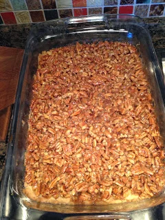 This dessert was heaven to me--a cross between pecan pie and baklava, but much easier than either to prepare. Very, very rich, so it serves a ton.