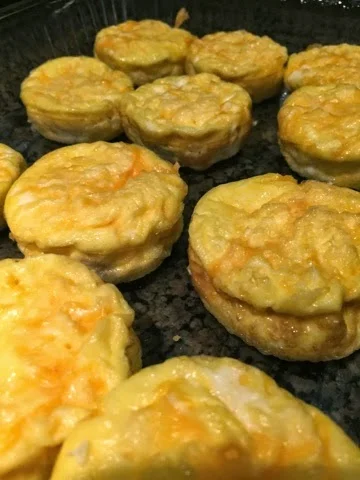 Breakfast just got a whole lot easier 'round these parts. Did you know you can make a bunch of scrambled eggs ahead of time in muffin tins? And then reheat them for a few days afterwards? Did you know you can put whatever you want in them? I didn't either. I was googling 'make ahead scrambled eggs' last weekend because we were having our dear friends over for brunch. I was mostly making weird grown up stuff, but wanted some plain eggs for the kids that I didn't have to make last minute as I was scrambling (no pun intended) to get our meal served. I guess I wasn't the only one who wanted this life hack, because the interwebs are littered with applicable ideas. This discovery has changed my life. No more am I standing at the stove stirring eggs for myself (and my firstborn) every morning, or scrambling them the night before for my husband to heat up the next day. Nope. Now I just take about 2 minutes 2-3 times a week (plus baking time) and whip up a batch of egg muffins and then reheat servings in the morning. They are delicious. If I were just feeding myself, I'd add some veggies and other fancy stuff, but I keep the additions to strictly cheese (I've used sharp cheddar and Parmesan to date) so as to please everyone. Breakfast brilliance right here folks. Real breakfast brilliance.