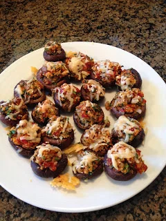-18 white mushrooms, stems pulled out and chopped fine and caps reserved (I used about 24 baby bella mushrooms. It just doesn't matter)